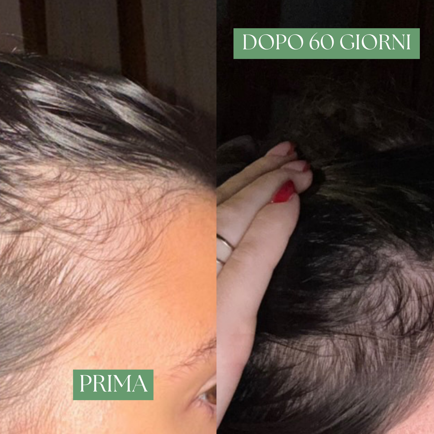 I risultati evidenziati parlano chiaro: densità visibilmente aumentata nelle aree diradate, capelli più forti, folti e sani.